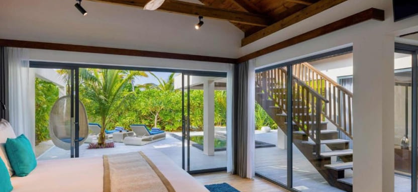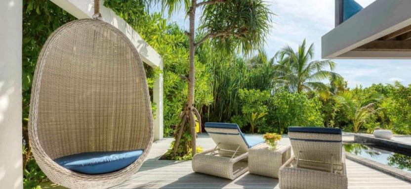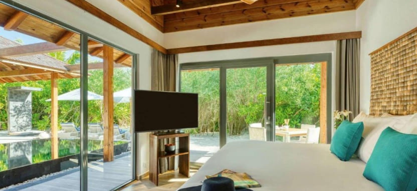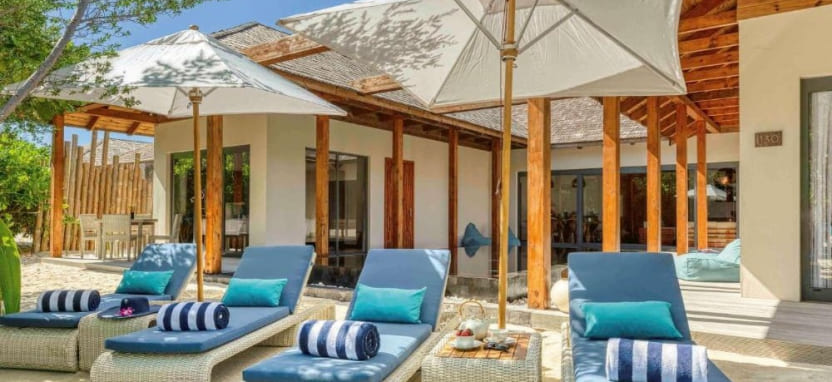 Pool Beach Residence (230 кв. м) – пляжная резиденция в тропическом саду. Три спальни, 2 из них с кроватями king-size и 1 с двумя односпальными кроватями, гардеробная, просторная гостиная с обеденной зоной, винный погреб, кабинет для спа-процедур с одним ежедневным бесплатным массажем, ванная комната с ванной и душем на открытом воздухе, меблированная терраса с бассейном, выходом к пляжу и видом на океан. Размещение – 6 взрослых или 4 взрослых с 2 детьми до 12 лет.