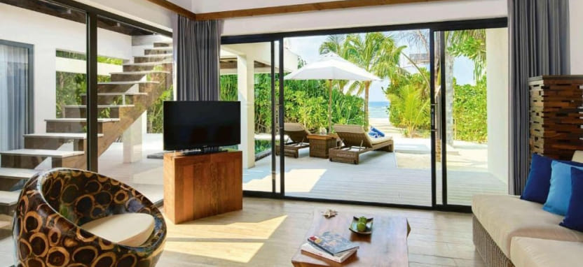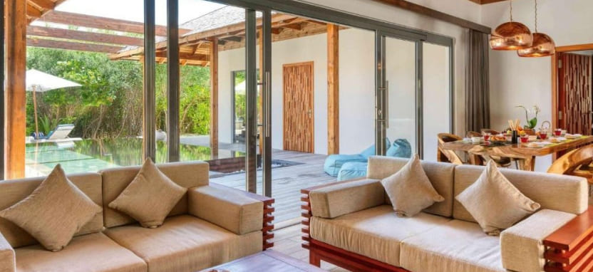 Beach Pool Villa Deluxe (190 кв. м) – пляжная вилла в тропическом саду. Большая спальня с кроватью king-size, диван-кровать, гардеробная, зона отдыха, винный погреб, ванная комната с ванной и душем на открытом воздухе, меблированная терраса с бассейном, выходом к пляжу и видом на океан. Размещение – 3 взрослых или 2 взрослых с 2 детьми до 12 лет.