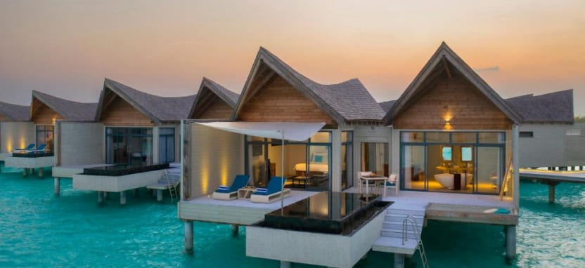 Overwater Pool Villa Sunrise (140 кв. м) – водная вилла с видом на восход солнца. Спальня с кроватью king-size или двумя односпальными кроватями, гардеробная, зона отдыха, обеденная зона, винный погреб, ванная комната с ванной и душем на открытом воздухе, меблированная терраса с бассейном, спуском в воду и видом на океан. Размещение – 2 взрослых с ребенком до 2-х лет.