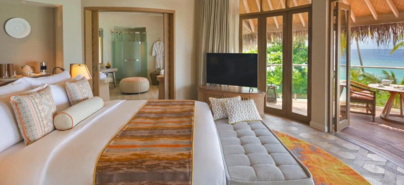 Beach Residence with Private Pool (415 кв. м) – пляжная двухэтажная резиденция. Спальня с кроватью king-size, отдельная гостиная, кухня с баром, обеденная зона, ванная комната с ванной и душем, тропический душ на свежем воздухе. меблированная терраса с бассейном, зоной отдыха, выходом к пляжу и видом на океан. Всего 3 виллы данной категории.