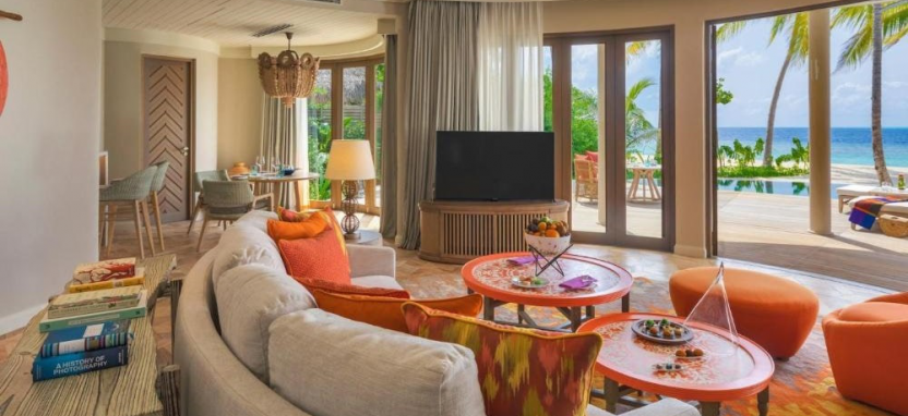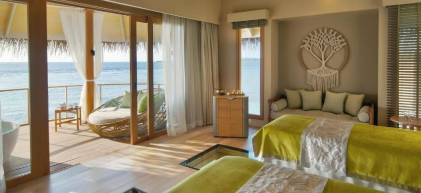 The Nautilus Retreat with Private Pool (542 кв. м) – роскошная водная вилла с двумя спальнями. Спальни с кроватями king-size, отдельная гостиная с прозрачной вставкой в полу, кухня, обеденная зона, 2 ванные комнаты с ванной и душем, меблированная терраса с бассейном, зоной отдыха, спуском в воду и видом на океан. Всего 1 вилла данной категории.