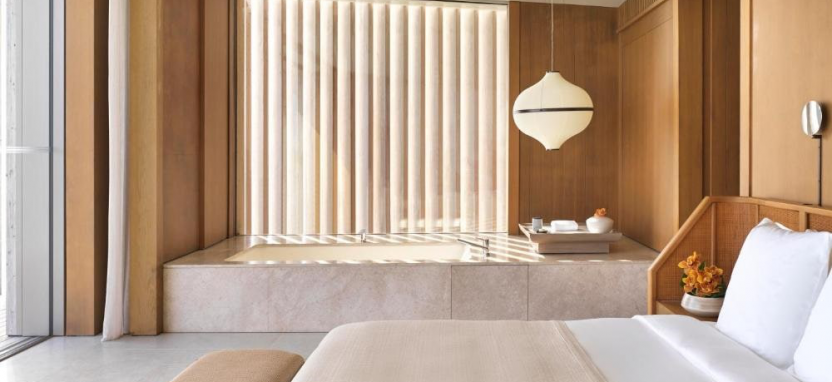 Beach Pool Villa (155 кв. м) – пляжная вилла в саду. Кровать king-size, зона отдыха, гидромассажная ванна, мраморная ванная комната с душем, меблированная терраса с инфинити-бассейном, выходом к пляжу и видом на океан. Размещение – до 3 человек.