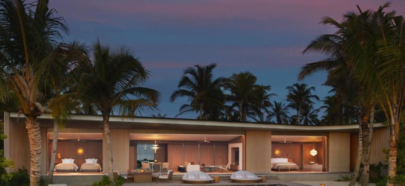 Sunset Beach Pool Villa (400 кв. м) – пляжная вилла с двумя спальнями и видом на закат. Спальня с кроватью king-size, спальня с двумя одноместными кроватями, отдельная гостиная, обеденная зона, гидромассажная ванна, 2 мраморные ванные комнаты с душем, меблированная терраса с инфинити-бассейном, выходом к пляжу и видом на океан. Размещение – до 6 человек.