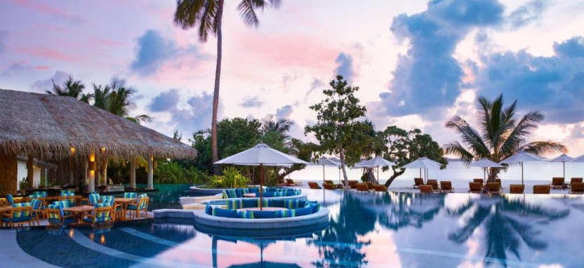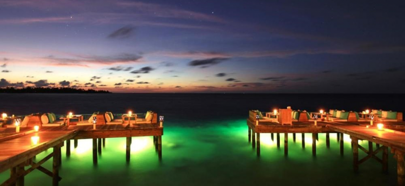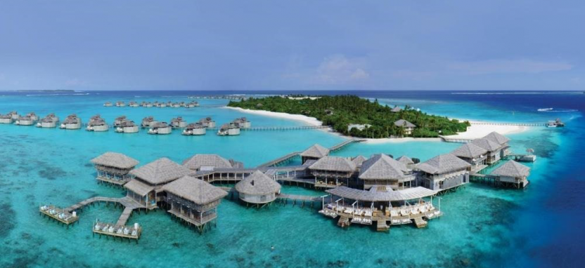 Открытый бассейн с видом на океан, 94 водных и пляжных виллы, 6 ресторанов и баров, бутик, библиотека, детский клуб, спа-центр, павильон для занятий йогой и медитацией, тренажерный зал, центр водного спорта, организация свадеб и праздничных торжеств, вечерний кинотеатр.