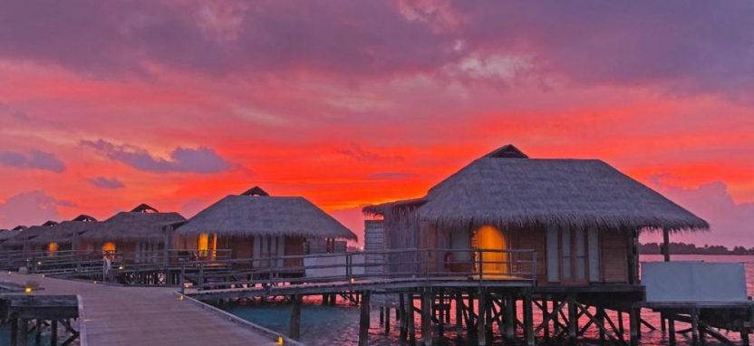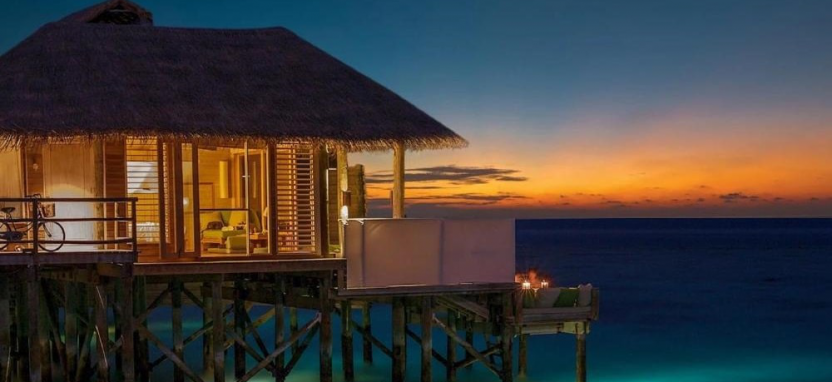 Sunset Laamu Water Villa (108 кв. м) – водная вилла с видом на закат. Кровать king-size, зона отдыха, ванная комната открытого плана со стеклянной ванной и тропическим душем на свежем воздухе, палуба на крыше, меблированная терраса с зоной отдыха, обеденной зоной со стеклянным столом, надводным гамаком, спуском в воду и видом на океан. Размещение – до 4 человек.