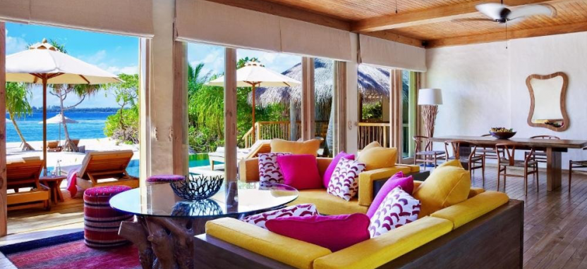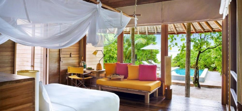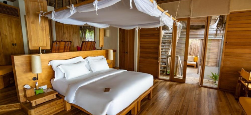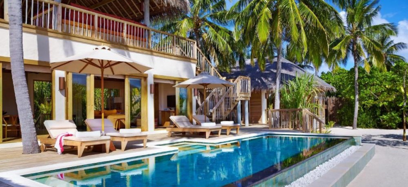 Family Beach Villa with Pool (253 кв. м) – семейная пляжная вилла. Спальня с кроватью king-size, детская комната, зона отдыха, ванная комната открытого плана с ванной и душем, тропический душ на свежем воздухе, палуба на крыше с обеденной зоной, меблированная терраса с бассейном, зоной отдыха, выходом к пляжу и видом на океан и лагуну. Размещение – до 4 человек.