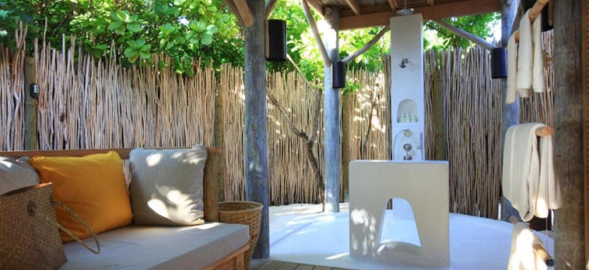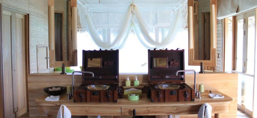 The Retreat (1 728 кв. м) – роскошная пляжная резиденция. 3 спальни с кроватями king-size, детская комната, просторная гостиная с обеденной зоной, кухня, балкон, зоны отдыха, 4 ванные комнаты, тропический душ на свежем воздухе, меблированная терраса на сваях с 20-метровым бассейном, зоной отдыха, обеденной зоной, гамаком над водой, спуском в воду и видом на лагуну. Размещение – до 9 человек.