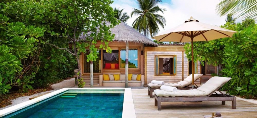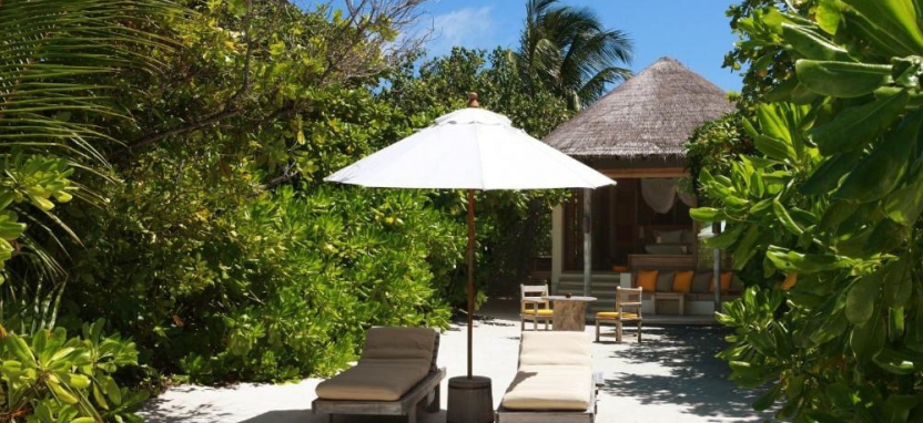 Lagoon Beach Villa with Pool (238 кв. м) – пляжная вилла в саду. Кровать king-size, зона отдыха, ванная комната открытого плана с ванной и душем, тропический душ на свежем воздухе, палуба на крыше с обеденной зоной, меблированная терраса с бассейном, зоной отдыха, выходом к пляжу и видом на лагуну. Размещение – до 4 человек.