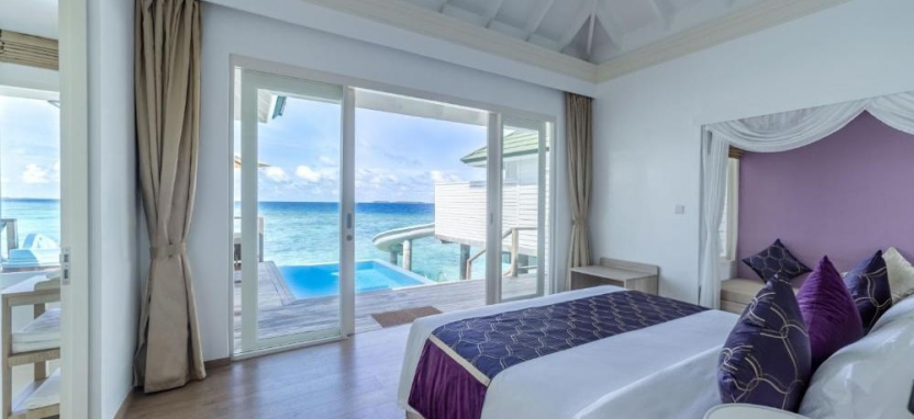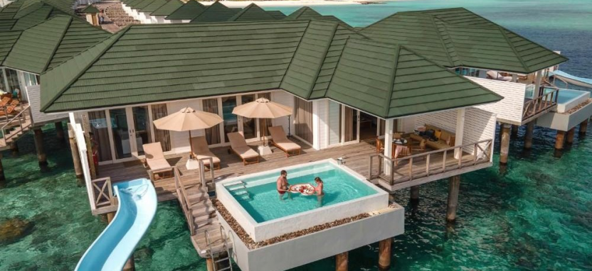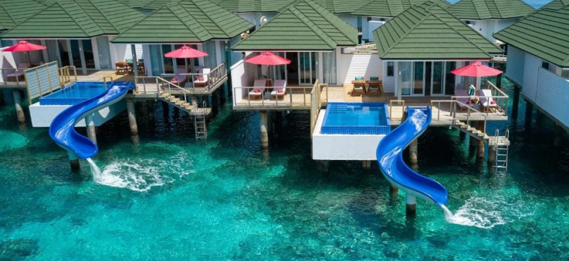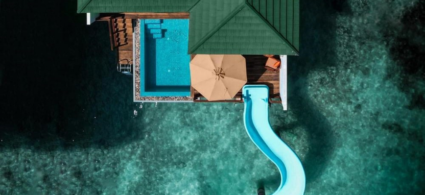 Water Pavilion & Slide (179 кв. м) – просторная водная вилла. Спальня с кроватью king-size, отдельная гостиная, ванная комната с гидромассажной ванной и душем, терраса с бассейном, водной горкой, шезлонгами, зоной отдыха, тропическим душем, спуском в воду и видом на океан. Размещение – до 3 человек.