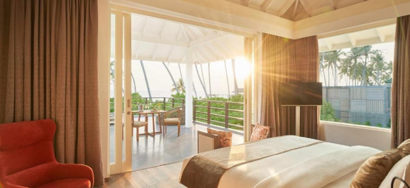 Sunset Pool Beach Villa (91 кв. м) – пляжная вилла с видом на закат. Кровать king-size, раскладной диван, письменный стол, ванная комната с душем под открытым небом, терраса с бассейном, шезлонгами, зоной отдыха, выходом к пляжу и видом на океан. Размещение – 3 взрослых или 2 взрослых с ребенком.