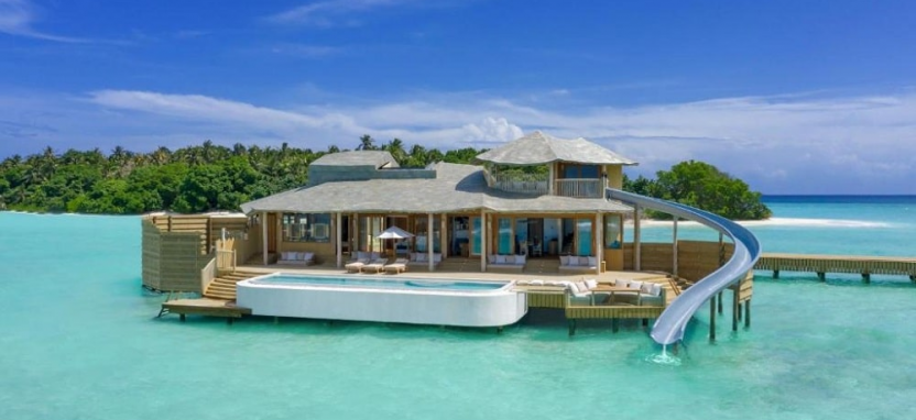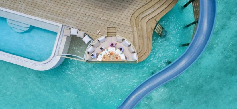 1-Bedroom Water Reserve with Slide (585 кв. м) – водная вилла с водной горкой и раздвижной крышей. Спальня с кроватью king-size, гостиная, детская комната, комната для чтения, кладовая, ванная комната с двумя раковинами и тропическим душем, ванна на открытой палубе, гостевой туалет, на верхней палубе расположена обеденная сала и доступ к водной горке, терраса с бассейном, зоной отдыха, надводным гамаком, спуском в воду и видом на океан. Размещение – 2 взрослых с 2 детьми.