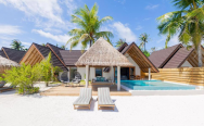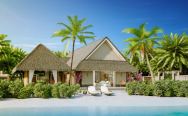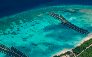 Aqua Retreat (350 кв. м) – просторная водная вилла с двумя спальнями с кроватями king-size. Отдельная гостиная, 2 ванные комнаты с гидромассажными ваннами и душем, служба дворецкого, меблированная терраса с пейзажным бассейном, обеденной зоной, спуском в воду и видом на океан. Размещение – до 6 человек.