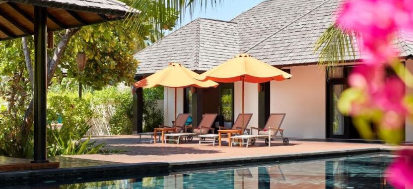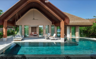 Pool Beach Villa (140 кв. м) – пляжная вилла в саду. Кровать king-size, гостиная зона, ванная комната с гидромассажной ванной и душем на отрытом воздухе, меблированная терраса с бассейном, обеденной зоной, выходом к пляжу и видом на океан. Размещение – 4 взрослых с ребенком или 2 взрослых с 3 детьми.