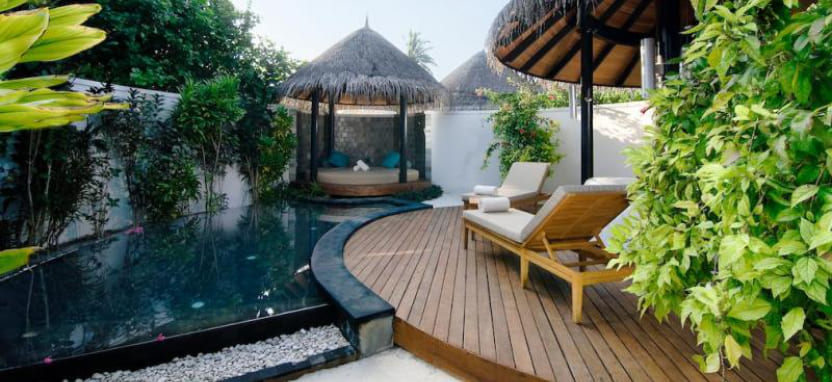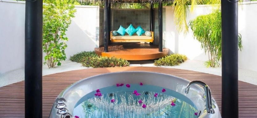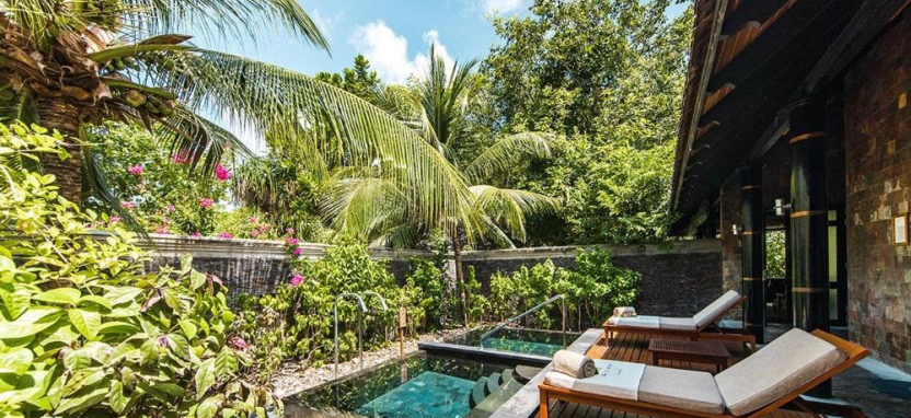 Deluxe Beach Villa with Pool (125 кв. м) – пляжная вилла в саду. Кровать king-size, зона отдыха, ванная комната с гидромассажной ванной и душем на отрытом воздухе, меблированная терраса с бассейном, обеденной зоной, выходом к пляжу и видом на океан. Размещение – 3 взрослых с ребенком или 2 взрослых с 2 детьми.