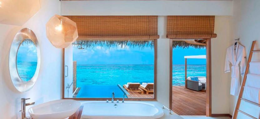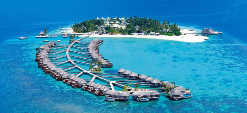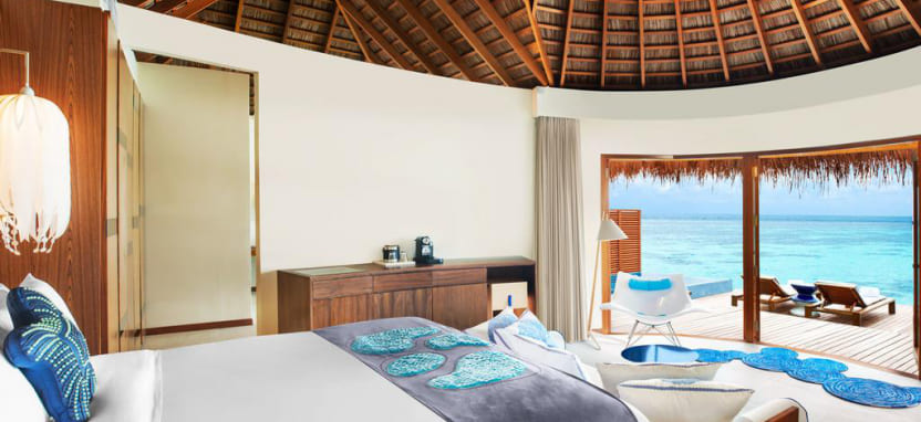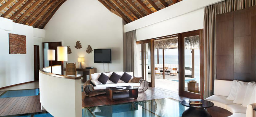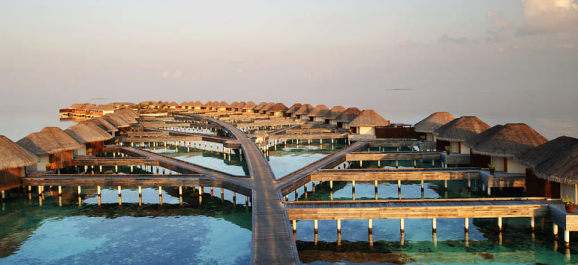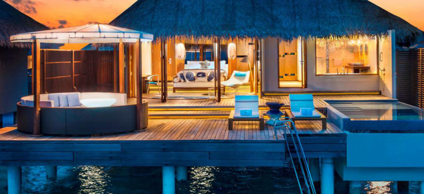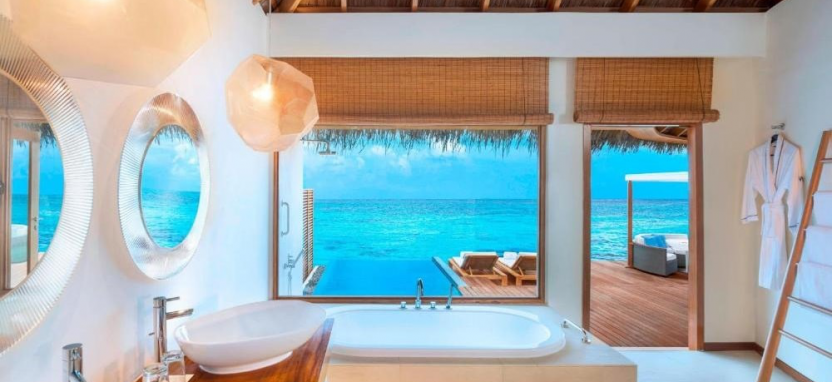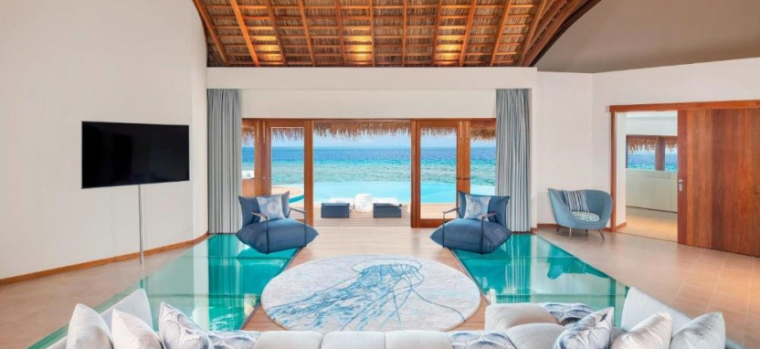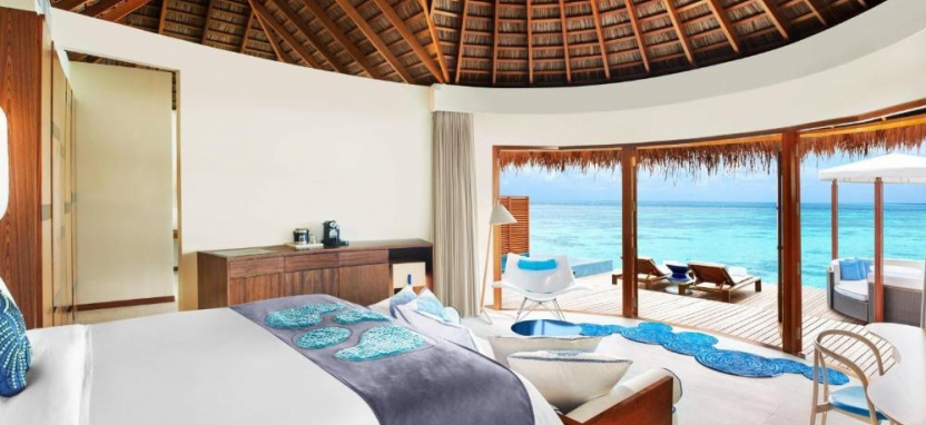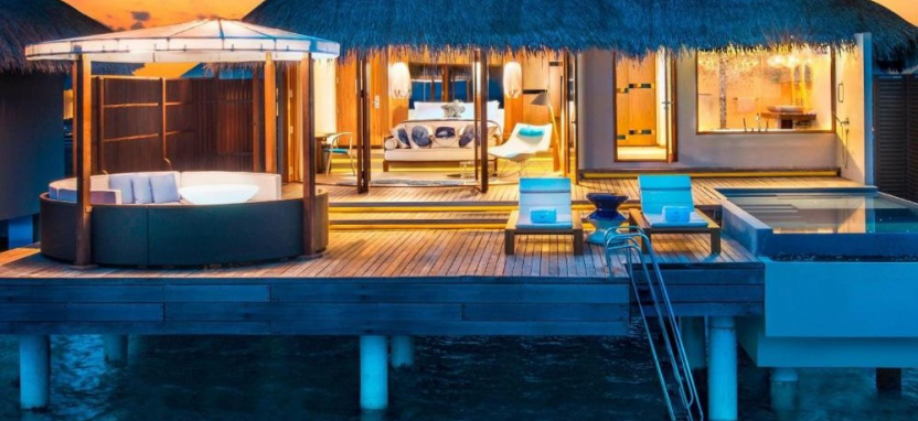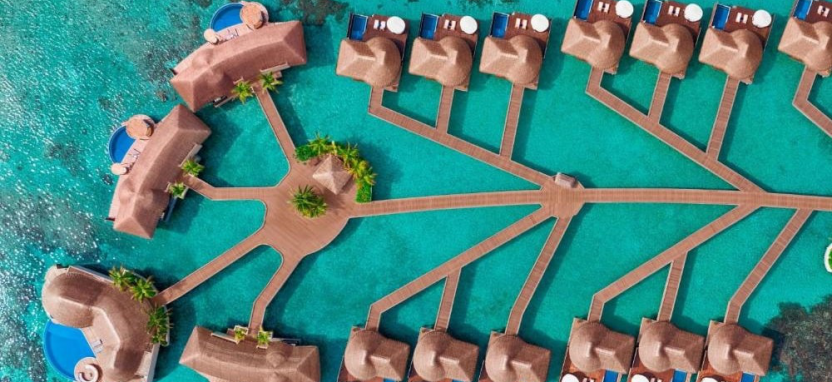 Supreme Overwater Villa (323 кв. м) – водная вилла с двумя спальнями. Спальня с кроватью king-size, спальня с двумя односпальными кроватями, диван-кровать, просторная гостиная, обеденная зона, 2 мраморные ванные комнаты с ванной и душем, меблированная терраса с полукруглым бассейном, шезлонгами, зоной отдыха, спуском в воду и видом на океан. Размещение – до 4 человек.