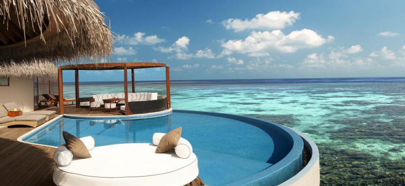 Oasis Overwater Villa (492 кв. м) – водная вилла с двумя спальнями. В каждой спальне кровати king-size, диван-кровать, просторная гостиная, обеденная зона, 2 мраморные ванные комнаты с ванной и душем, меблированная терраса с полукруглым бассейном, шезлонгами, зоной отдыха, спуском в воду и видом на океан. Размещение – до 4 человек.