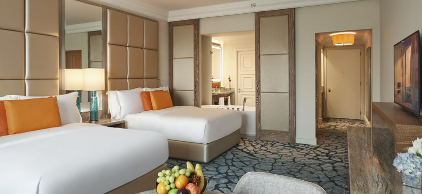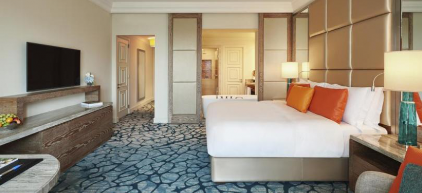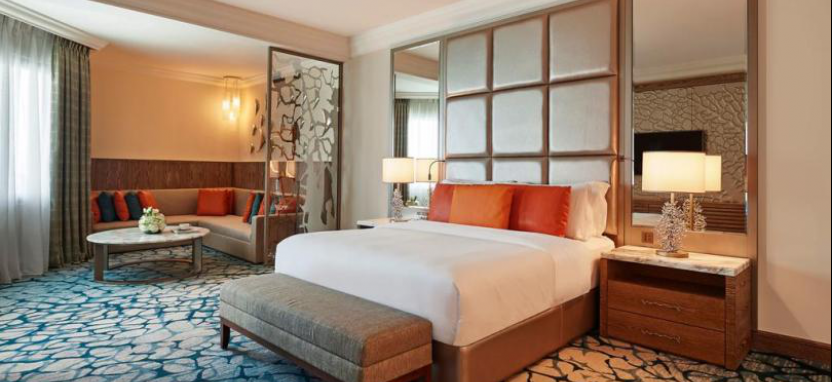 Regal Suite (164 кв. м. + терраса) - захватывающие виды острова Пальма Джумейра, небоскребов Дубая или Аравийского моря, 1 или 2 спальни с кроватью King Size (доплата за дополнительную кровать). Ванная комната с ванной и душем. Просторная столовая, гостиная, отделенная от спальни дверью. Максимальное размещение - 2 взрослых + 2 детей младше 14 лет + 1 младенец (в детской кроватке) или 3 взрослых.