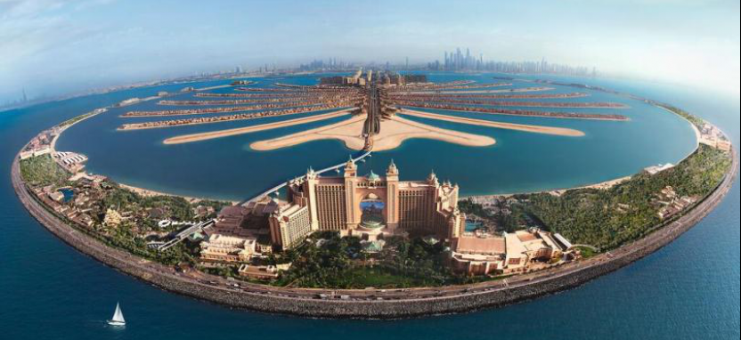 Отель стоит на "кроне" пальмы, и его розово-оранжевые башни видны даже из космоса!