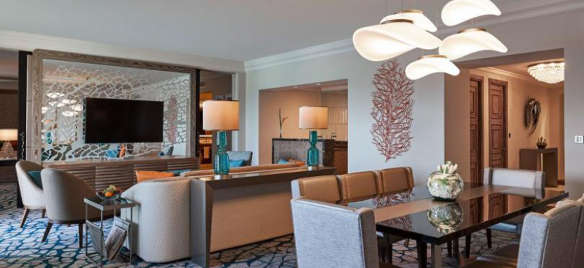 Presidential Signature Suite (220 кв. м. + терраса) - панорамный вид на остров Пальма Джумейра и Аравийское море, 1 спальня с кроватью King Size. Ванная комната с ванной, огромное джакузи. Стильный лаунж, обеденная зона, отдельное рабочее пространство и гардеробная. Круглосуточное обслуживание персональным дворецким и регистрация в номере. Максимальное размещение - 2 взрослых + 1 ребенок младше 14 лет или 3 взрослых.