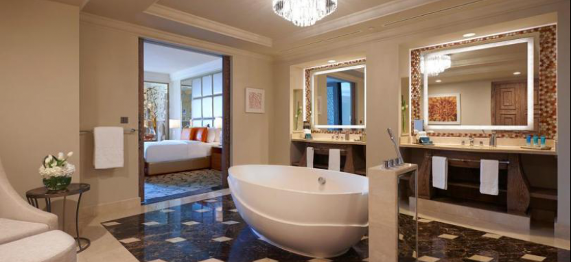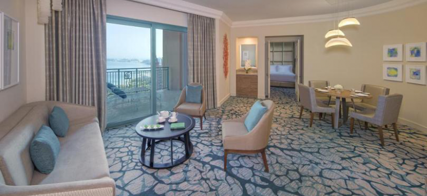 Skyline Suite (101 кв. м. + терраса) - великолепные виды Аравийского моря и острова Пальма Джумейра, 1 или 2 спальни с кроватью King Size. Ванная комната с ванной, душевой кабиной и двойной раковиной. Просторная столовая, гостиная, отделенная от спальни дверью. Отдельное рабочее пространство. Максимальное размещение - 2 взрослых + 2 детей младше 14 лет + 1 младенец (в детской кроватке) или 3 взрослых.