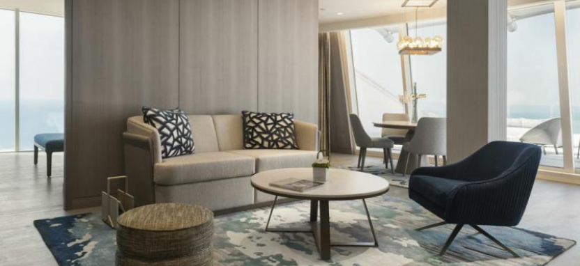 Al Marsa Suite (218 кв. м.) - вид на море, спальня с кроватью king-size, 2 этажа. Отдельные душевая кабина и ванна, роскошные туалетные принадлежности. Доступ в лаунж-бар Club Lounge, клуб The Family Club, бар The Sunset Club. Пользование бассейном Executive Pool и пляжем Executive Beach. Оформление заезда прямо в вашем номере с 15:00. Максимальное размещение - 4 человека.