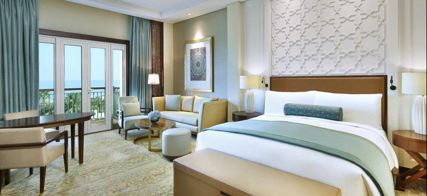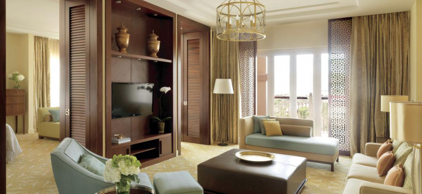 One Bedroom Gulf Suite (110 кв. м + балкон) – люкс с King Size кроватью, отдельной гостиной, столовой зоной, балконом и видом на сад. Включает гардеробную, мраморную ванную комнату с ванной и душем, биде, двойным умывальником. Максимальное размещение — 4 человека (с одной раскладной кроватью или одной детской кроваткой).