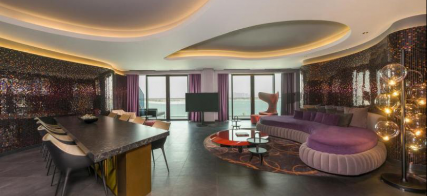 Отель W Dubai - The Palm 5* расположен в премиум-сегменте западного побережья острова Пальма Джумейра, в окружении приватных пляжей и панорамных видов на Персидский залив.
