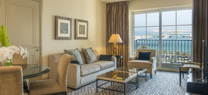 Luxury Suite Sea View (158 кв. м) – просторный люкс с одной спальней, отдельной гостиной и балконом с панорамным видом на море. В спальне кровать King Size, в гостиной раскладной диван. Эргономичная рабочая зона, письменный стол. Ванная комната отделана мрамором, с отдельными ванной и душем. Включает доступ в Club Lounge, а также выделенную зону на открытом воздухе. Предоставляется трансфер из и в аэропорты Дубая (до двух поездок за проживание, подтверждение за 48 часов до заезда). Максимальное размещение – 5 человек (с одной раскладной кроватью или одной детской кроваткой).