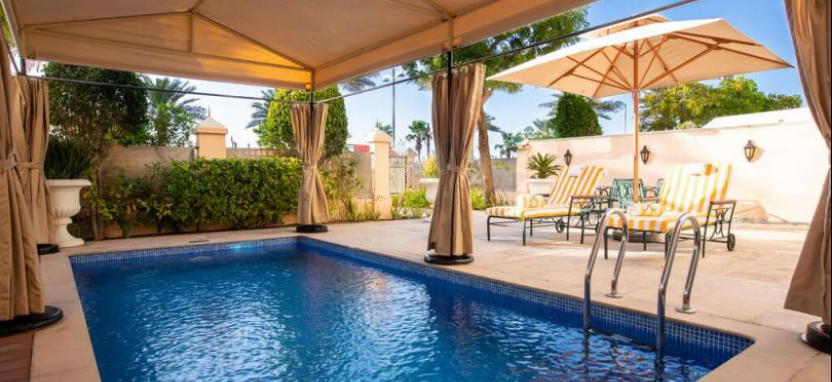 Two-Bedroom Suite with Private Pool (350 кв. м + терраса + бассейн) - панорамный вид на бассейн, спальня с кроватью King Size и спальня с 2 односпальными кроватями. Ванная комната с ванной и душем. Отдельный вход и бассейн с шезлонгами. Уютная гостиная, полностью оборудованная кухня, терраса. Обеденная зона и зона отдыха. Максимальное размещение - 6 человек.