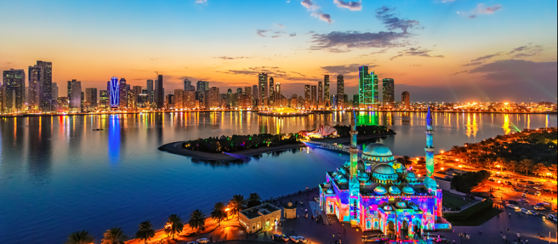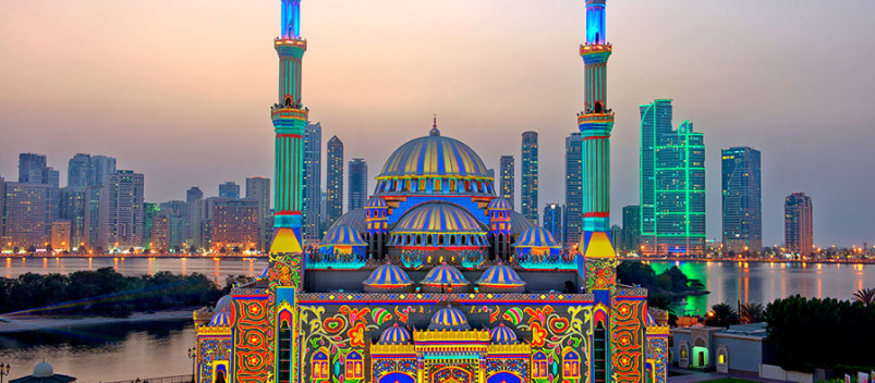 Расположенный на берегу Персидского залива, в считанных минутах езды от Дубая, город Шарджа, сочетает в себе современность и традиционный восточный колорит исламской архитектуры, благодаря которому в уме всплывают образы из сказок Шехерезады. Небольшие особняки, многочисленные мечети и стрелы минаретов старого города сменяются здесь абстрактными скульптурами, современными фонтанами и высочайшими небоскребами с магазинами и яркими рекламными вывесками новых районов. Среди достопримечательностей Шарджи выделяются расположенный в центре столицы огромный монумент «Коран», а также Форт Аль-Хиш 19 века.
