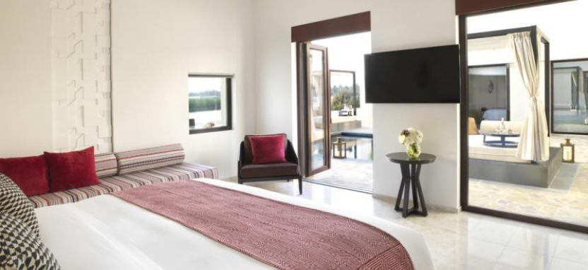 Deluxe Garden View (91 кв. м) – номера с частным садом с пальмами и открытой террасой с меджлисом, рассчитаны на размещение двух взрослых и одного ребенка. Кровать king-size.