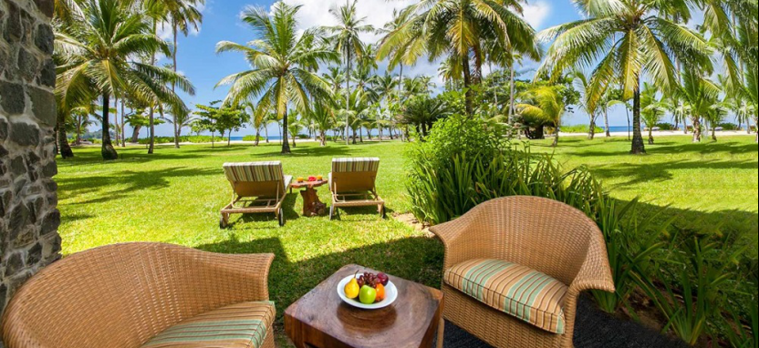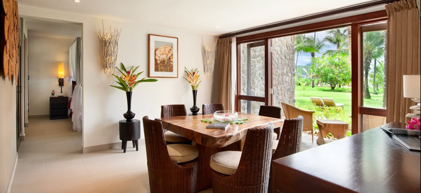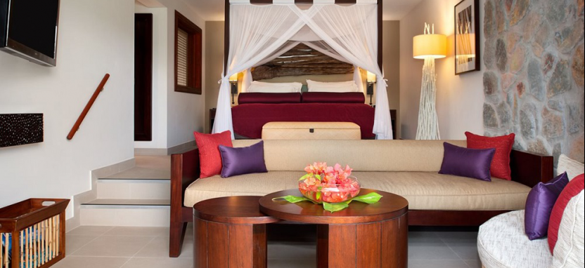 One Bedroom Sea View Garden Suite, 3+1 pax (81-94 кв. м) - номер с видом на море и сад. В номере спальня, гостиная, ванная комната, столовая, терраса. Прямой выход на пляж.