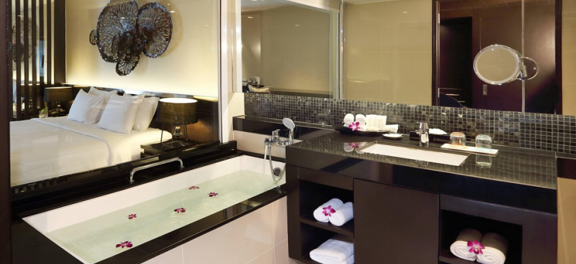Deluxe Pool View 3 pax (38 кв. м) - в номере спальня с большой двуспальной кроватью или двумя односпальными, ванная комната, балкон с успокаивающим видом на завораживающий бассейн.