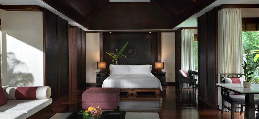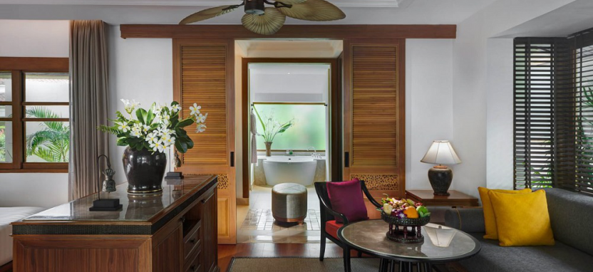 Grand Deluxe Garden Villa 2+2 pax (60 кв. м) - вилла в окружении зелени. Она отличается открытой планировкой, деревянными полами и мебелью, а также элегантным тайским декором с использованием ярких шелков, которые добавляют яркие краски. Просторная спальня с кроватью размера «king-size» и гостиная с шезлонгом и журнальным столиком гармонично сочетаются с элегантной открытой террасой.