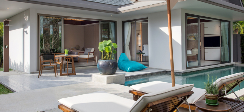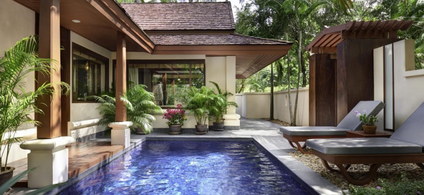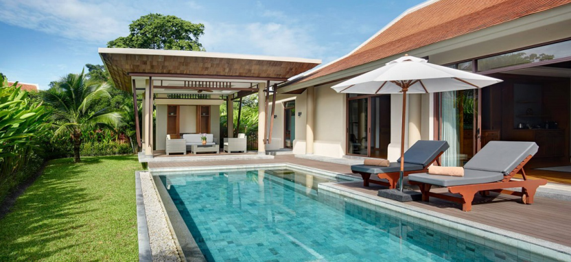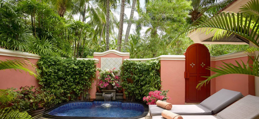 Grand Deluxe Garden Villa with Plunge Pool 2+2 pax (115 кв. м) - вилла в окружении зелени с небольшим частным бассейном. На каждой вилле есть главная спальня и большая гостиная с шезлонгом и журнальным столиком. Классический тайский декор, деревянные полы и яркие шелковые ткани.