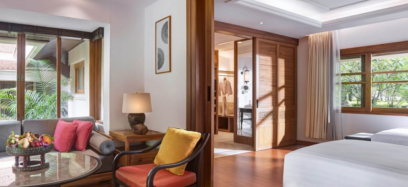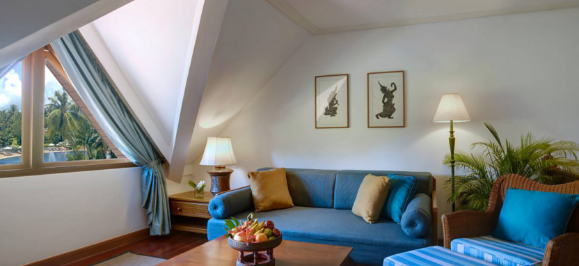 Two Bedroom Duplex Suite 4+2 pax (91 кв. м) - двухуровневые люксы с двумя спальнями, расположены в самом центре курорта с видом на бассейн и пышные сады. Главная спальня находится на верхнем этаже, а на первом этаже есть гостиная и спальня с двумя односпальными кроватями, две ванные комнаты.