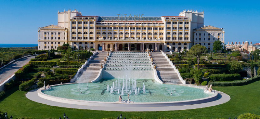 Titanic Mardan Palace расположен на площади 18 гектар и является лучшим отельным комплексом Антальи. Изысканный отель воплотил в себе величие дворца султана и современные технологии. В оформлении были использованы сусальное золото, драгоценные породы дерева и итальянский мрамор. Отель Титаник Мардан Палас предлагает для своих гостей самый большой бассейн в Европе (площадь до 10000 кв. м), роскошный спа-центр, 27 ресторанов и баров. В отеле проходят разнообразные шоу и концерты, для детей работает детский клуб (площадью 2000 кв. м) и собственный аквапарк. Белоснежный песок на одном из закрытых пляжей отеля был специально привезен с Мальдивских островов.