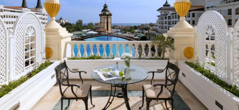 Grand Dublex Suite 5 pax (145 кв. м) - двухуровневый номер на 5 этаже главного здания. Имеют бассейн, частичный вид на море или реку Аксу, 2 спальни, 2 ванные комнаты, гостиная зона, мини-бар, сейф, балкон.
