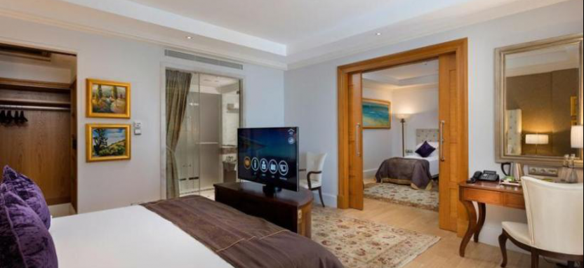 Royal Duplex Suite 5 pax (145 кв. м) - находится в главном здании отеля. Двухуровневый номер имеет 2 спальни, 2 ванные комнаты, гостиная, джакузи, турецкая баня, мини-бар, сейф, частная терраса. Вид на бассейн или море.