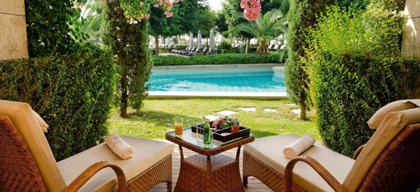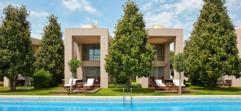 Queens & King Villas 8 pax (250 кв. м) - виллы в саду с уникальным видом на сад, бассейны и поле для гольфа. Бассейн с подогревом. Максимальное размещение - 8 взрослых и 2 ребенка. 4 спальни (на верхнем этаже одна спальня с 1 кроватью размера «king-size», одна спальня с двумя раздельными кроватями «queen-size», одна спальня с двумя раздельными односпальными кроватями, на нижнем этаже одна спальня с двумя раздельными кроватями «queen-size»), 4 ванные комнаты с джакузи и душем, 4 туалета. Гостиная с камином, обеденная зона, мини-кухня. Терраса с камином и джакузи на открытом воздухе.