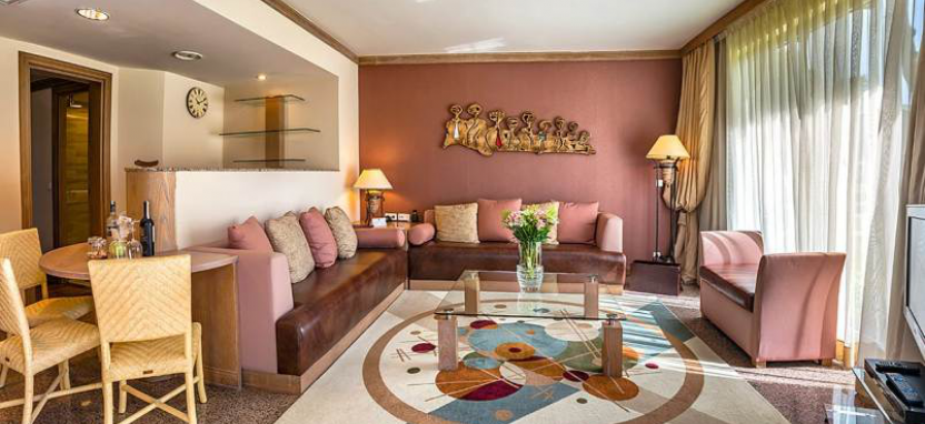 Junior Suite 4 pax (36 кв. м) - расположены в главном здании. Спальня с зоной гостиной, ванная комната, терраса или балкон. Вид на сад.