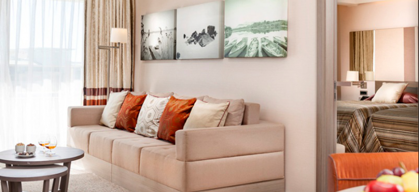 Superior Suite (94 кв. м) - гостиная, 2 спальни, 2 ванные комнаты, гостевой туалет, балкон. Вид на море.