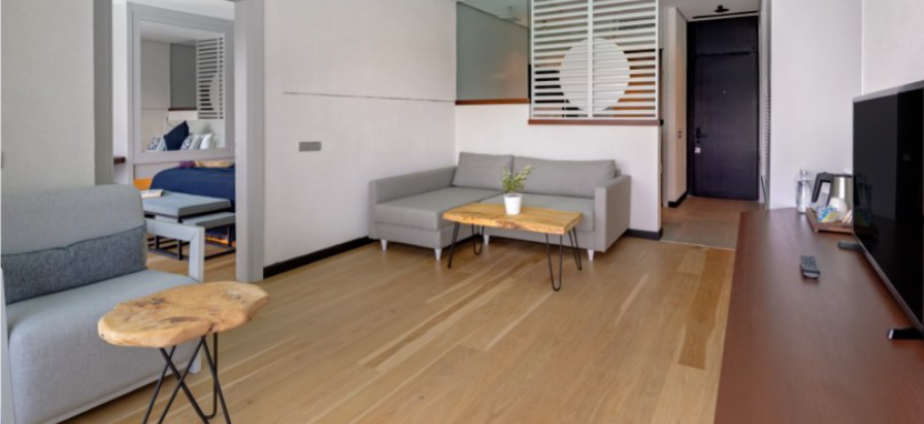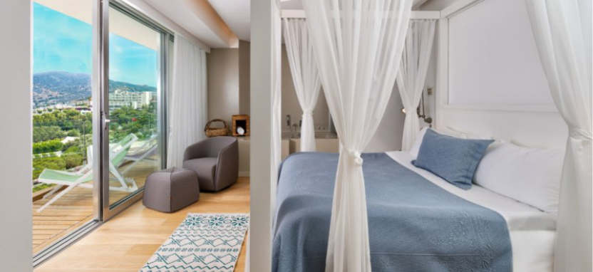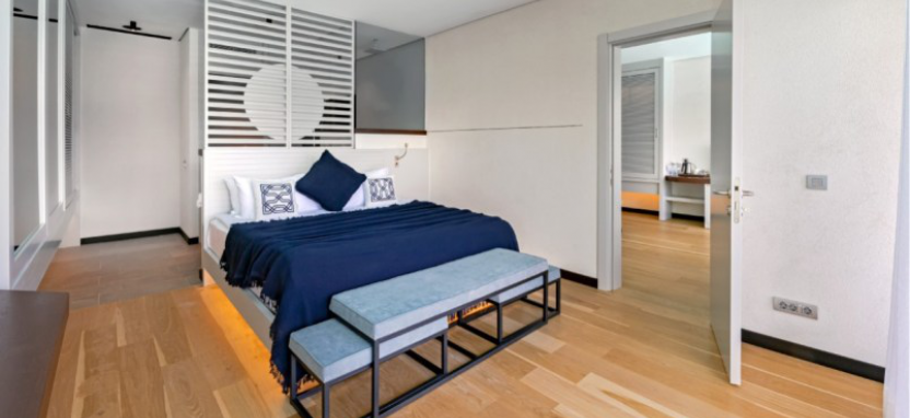 Grand Suite (90 кв. м) - спальня, гостиная, гардеробная зона, ванная комната, балкон. Расположены в главном здании на последнем этаже. Вид на море. Номера имеют открытую планировку.