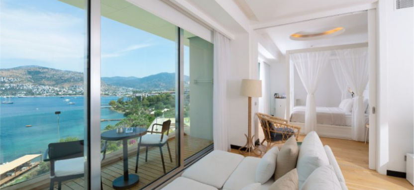 Deluxe King Oda (60 кв. м) - спальня, гостиная, 2 ванные комнаты, балкон. Расположены в главном здании. Вид на море.