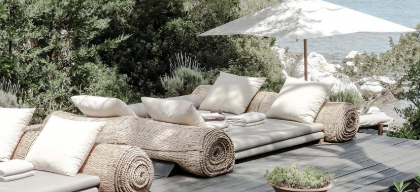 Pool Pavilion Partial Sea View (75 кв. м) - частный сад, терраса с открытым персональным бассейном, спальня с гостиной зоной (кровать king-size), ванная комната с ванной и душем с функцией «тропический дождь». Частичный вид на море. Номера имеют открытую планировку: спальная и ванная зоны не разделены.