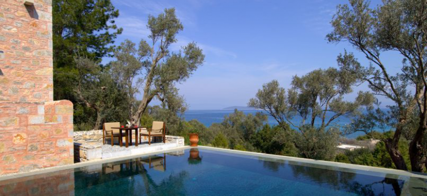 Pool Pavilion Deluxe Sea View (75 кв. м) - частный сад, терраса с открытым персональным бассейном, спальня с гостиной зоной (кровать king-size), ванная комната с ванной и душем с функцией «тропический дождь». Вид на море. Номера имеют открытую планировку: спальная и ванная зоны не разделены.