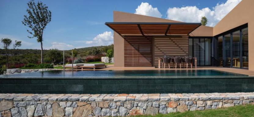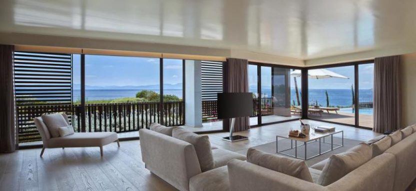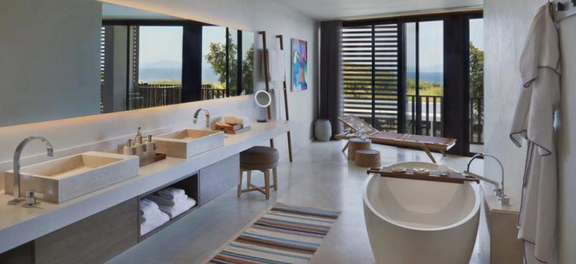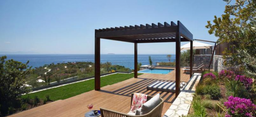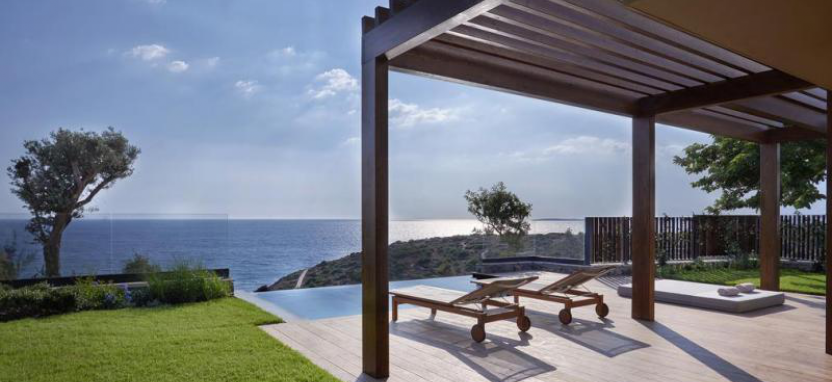 3-Bedroom Pool Residence (175-185 кв. м) - терраса с открытым персональным бассейном (28 кв. м) и обеденной зоной на открытом воздухе, частный сад, гостиная с камином, обеденная и кухонная зоны (стол на 6 персон), 3 спальни (две – с кроватью king-size, одна – с двумя отдельными кроватями), гардеробная, 3 ванные комнаты (одна – с ванной и душевой кабиной). Вид на море.