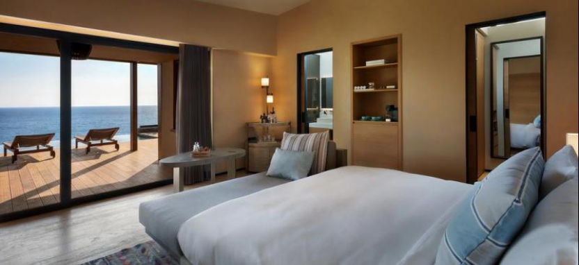 Master Suite with Pool (105 кв. м) - терраса с открытым персональным бассейном (12 кв. м), гостиная с обеденной зоной, спальня, гардеробная, ванная комната. Вид на море.