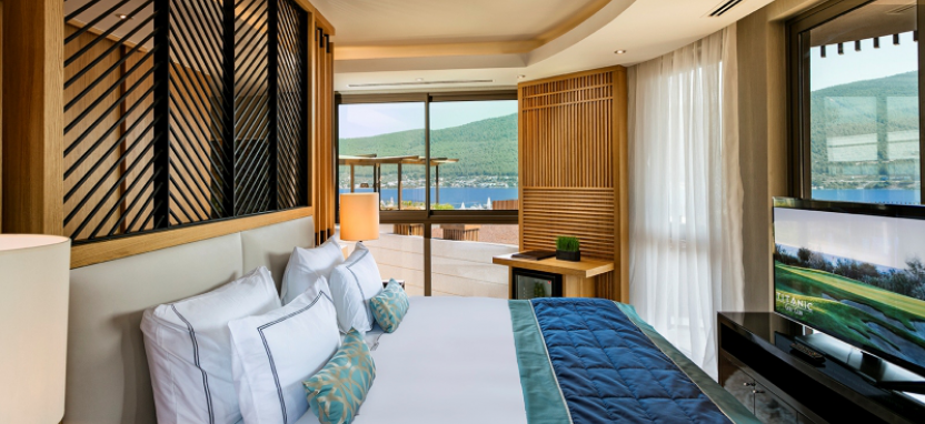Superior Room Sea View (51 кв. м) - спальня, ванная комната, балкон. Вид на море.