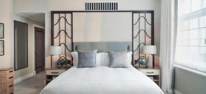 Brook Suite (115 кв. м) – гостиная с обеденной зоной, спальня, ванная комната. Вид на Брук-стрит или Дэвис-стрит.